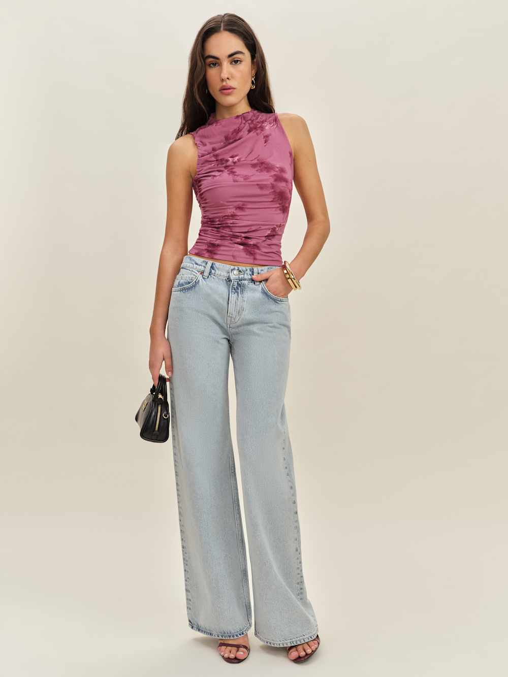 Up top. Shop the Marlo Knit Top from Reformation, a sleeveless top with a high neckline and ruching throughout.
