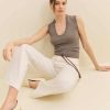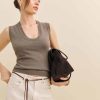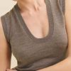 Up top. Shop the Marta Regenerative Merino Sweater Tank from Reformation, a sleeveless sweater tank with a deep U-shaped neckline and thick shoulder straps.