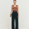 The model is wearing a size 0 and has a 24" waist, 36" hips.