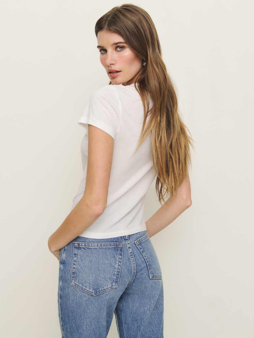 Shop the Max Slim Tee from Reformation, a short-sleeve tee with a crew neckline.