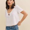 Up top. Shop the Mayla Linen Top from Reformation, a short-sleeved linen top with a v-neckline, relaxed fit, and adjustable tie at the neck.