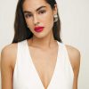 Up top. Shop the Meg Top from Reformation, a sleeveless top with a v-neckline, bust cust seams, and ruching at the bust.