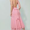 Romance alert. Shop the Mela Dress from Reformation, a sleeveless maxi dress with an adjustable tie neckline, cutout at the bust, and ruffle hem.