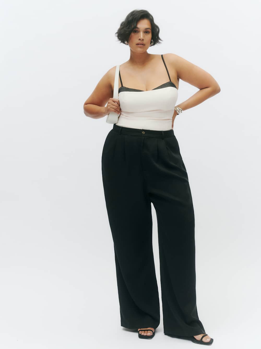 You make it look easy. Shop the Melanie Top ES from Reformation, a sleeveless top with contrast stitching and a sweetheart neckline.