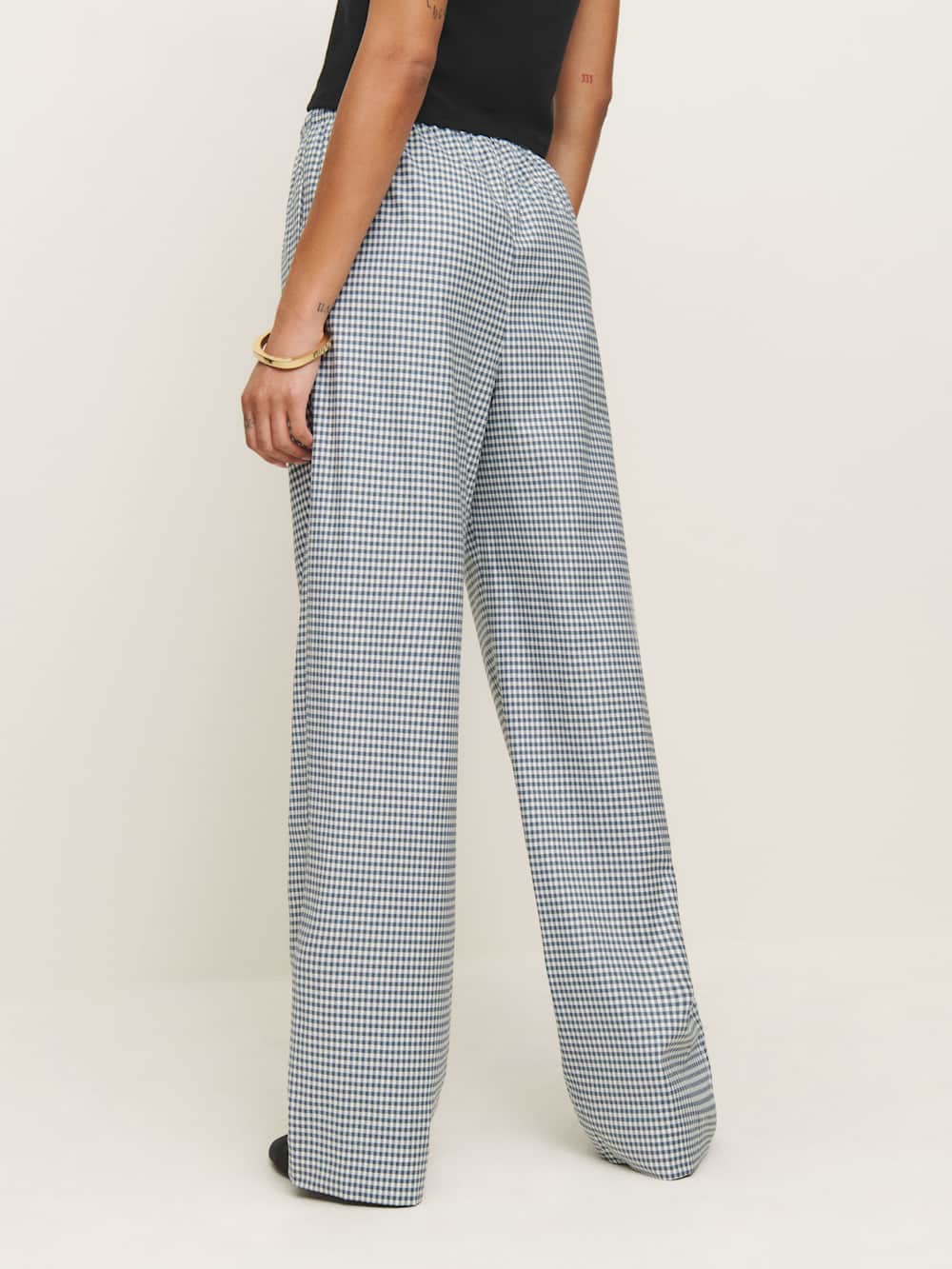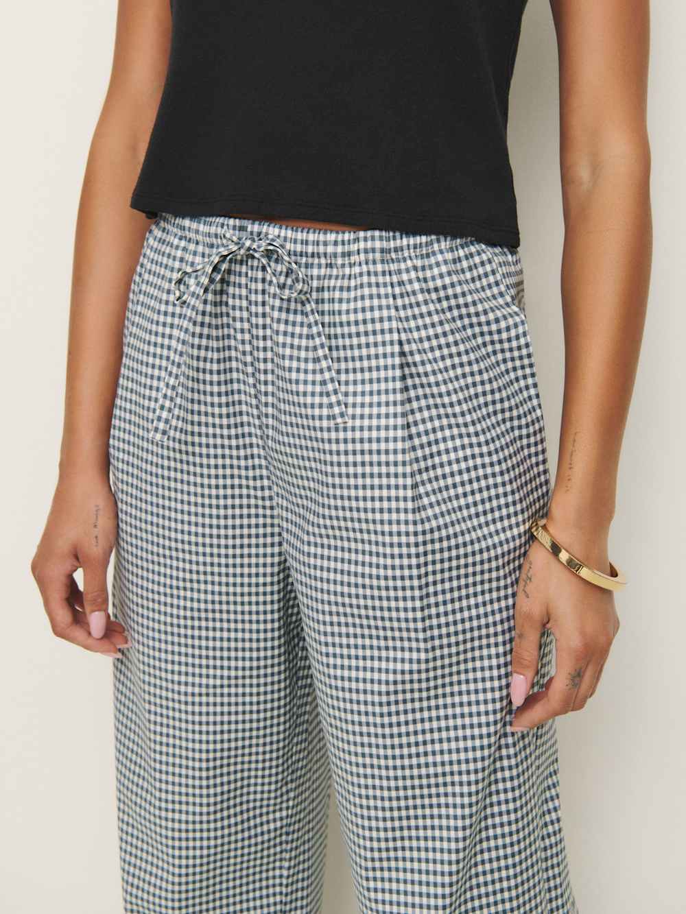 Throw on and go. Shop the Micah Poplin Pant from Reformation, a high rise pant with an elastic tie waistband and a relaxed fit.