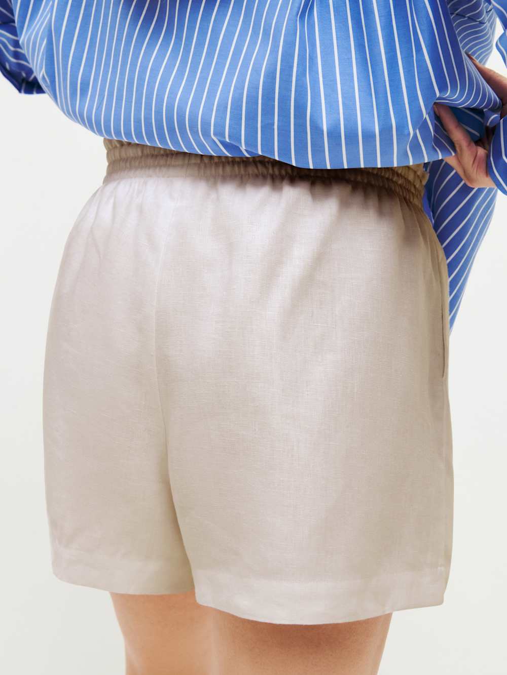 In case of getting dressed. Shop the Mila Linen Short ES from Reformation, an easy fitting short with a smocked waist and side pockets.