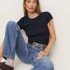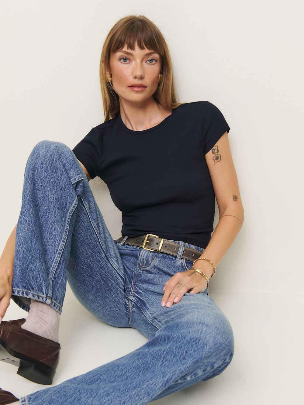 Throw on and go. The Muse is a tight fitting tee that is cropped at the waist.