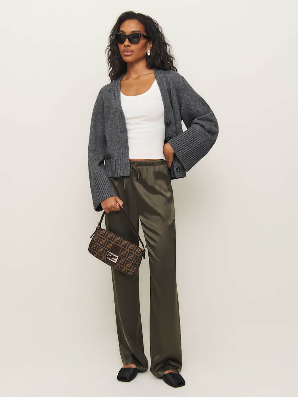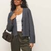 Layer up. Shop the Nala Cotton Cashmere Cardigan from Reformation, a long sleeve cardigan with a button front and slightly flared sleeve.