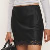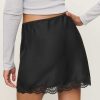 Wear the skirt. Shop the Neera Satin Skirt from Reformation, a mid-rise mini skirt with a lace hem.