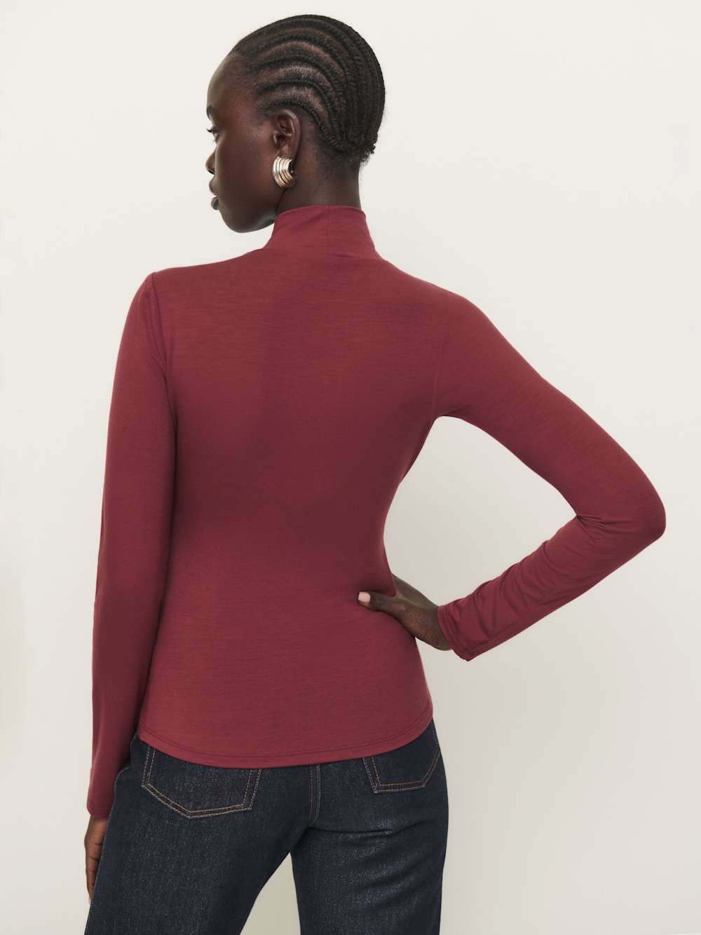 Layer up. Shop the Nell Knit Top from Reformation, a long-sleeve knit top with a turtle neckline.