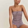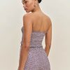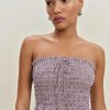 Up top. Shop the Nesta Top from Reformation, a strapless, cropped top with ruffle trim, a center front tie, and shirring throughout.