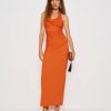 You make it look easy. Shop the Niccola Knit Dress from Reformation, a sleeveless maxi dress with a cowl neckline, open back, and cinch detailing.