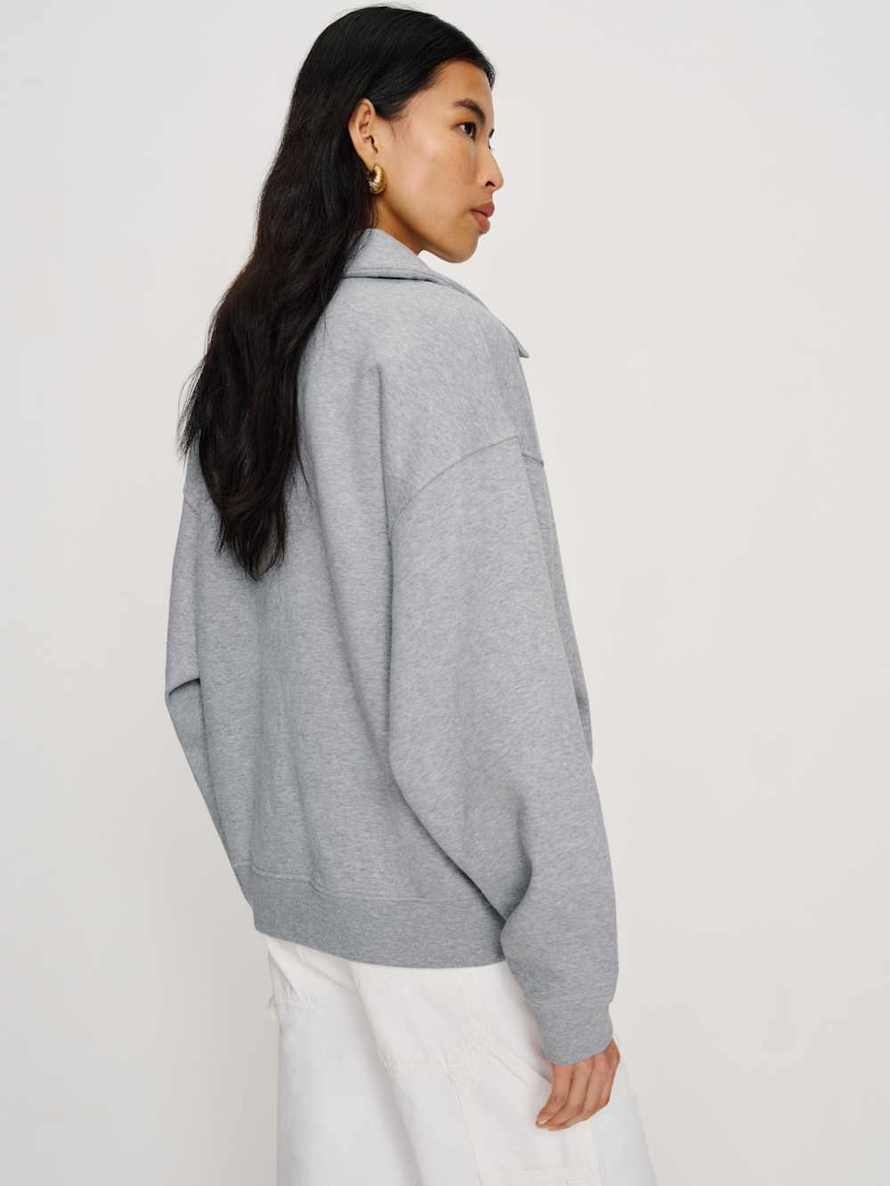 Comfy. Shop the Nico Classic Polo Sweatshirt from Reformation, a long-sleeved collared sweatshirt with 1/4 button closure.