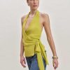 Up top. Shop the Nila Top from Reformation, a sleeveless wrap top with a halter neckline.