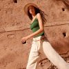 Wear the pants. Shop the Olina Linen Pant ES from Reformation, fitted in the waist with a relaxed fitting leg.