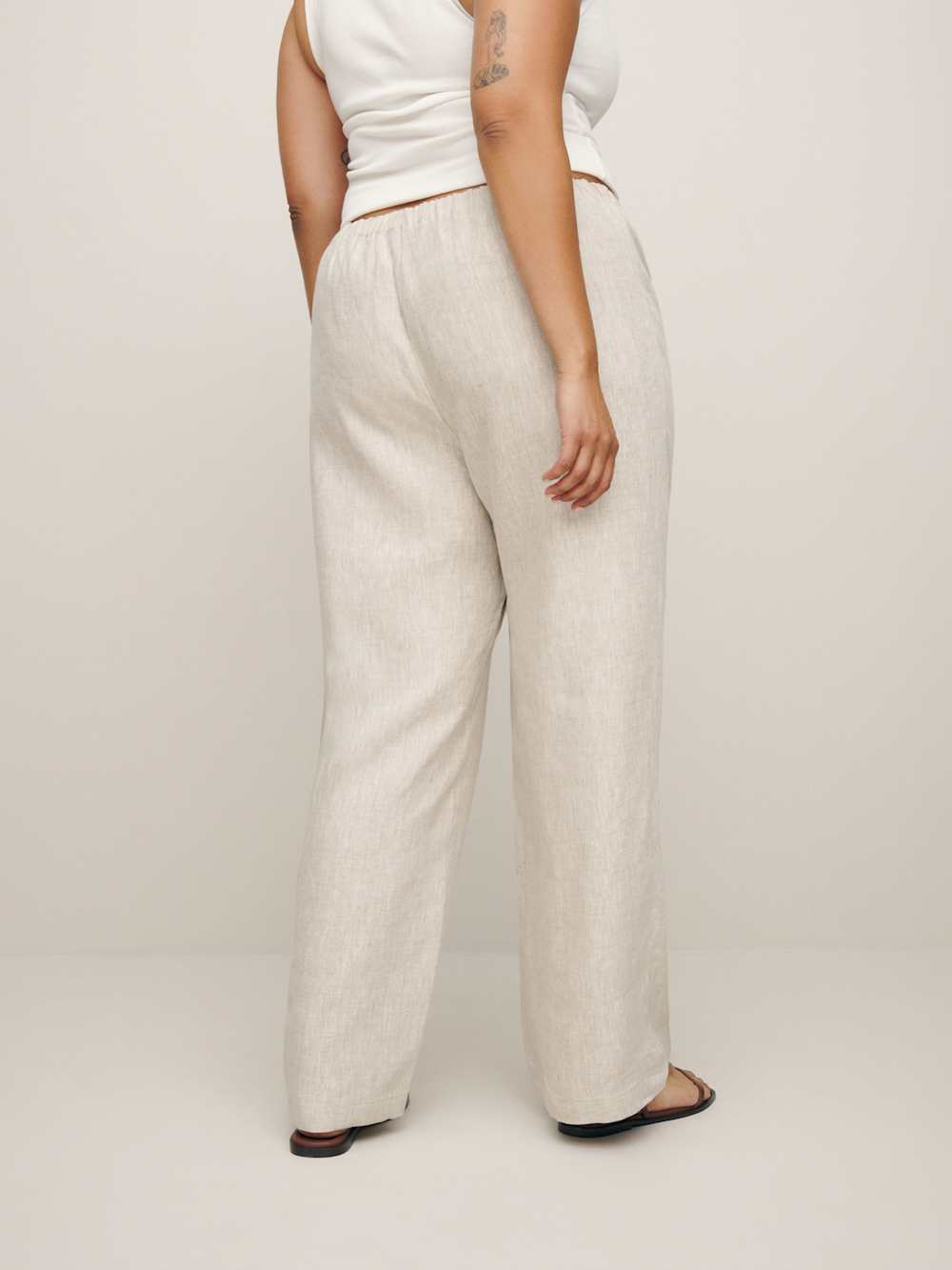 Wear the pants. Shop the Olina Linen Pant ES from Reformation, fitted in the waist with a relaxed fitting leg.