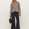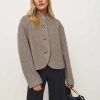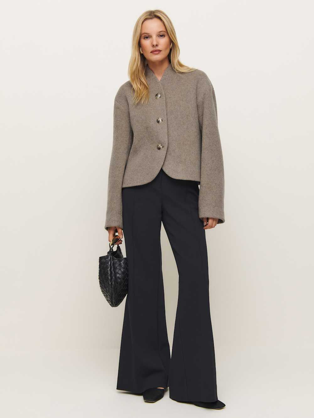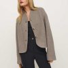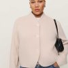 Layer up. Shop the Owen Jacket from Reformation, a collarless jacket with a boxy fit and button front.