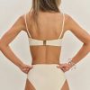 Shop the Perla Bikini Top from Reformation, a sleeveless bikini top with a sweetheart neckline, ruching throughout, and pearl detailing.