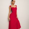 Wear the dress. Shop the Petites Bryson Dress from Reformation, a midi dress with short, cap sleeves, a sweetheart neckline, and back smocking.