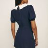 Get some compliments. Shop the Petites Kaylia Dress from Reformation, a mini dress with a v-neckline, puff sleeves, oversized collar, and ties at the front.