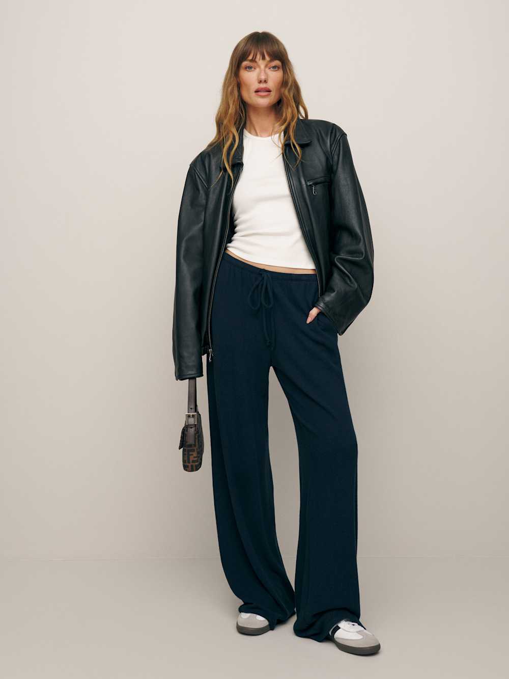 You make it look easy.  Shop the Petites Olina Knit Pant from Reformation, a mid-rise pant with a relaxed fit and a drawstring waist.