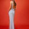 Romance for one. Shop the Pheby Dress from Reformation, a sleeveless floor-length dress with an asymmetrical cowl neckline and high side slit.