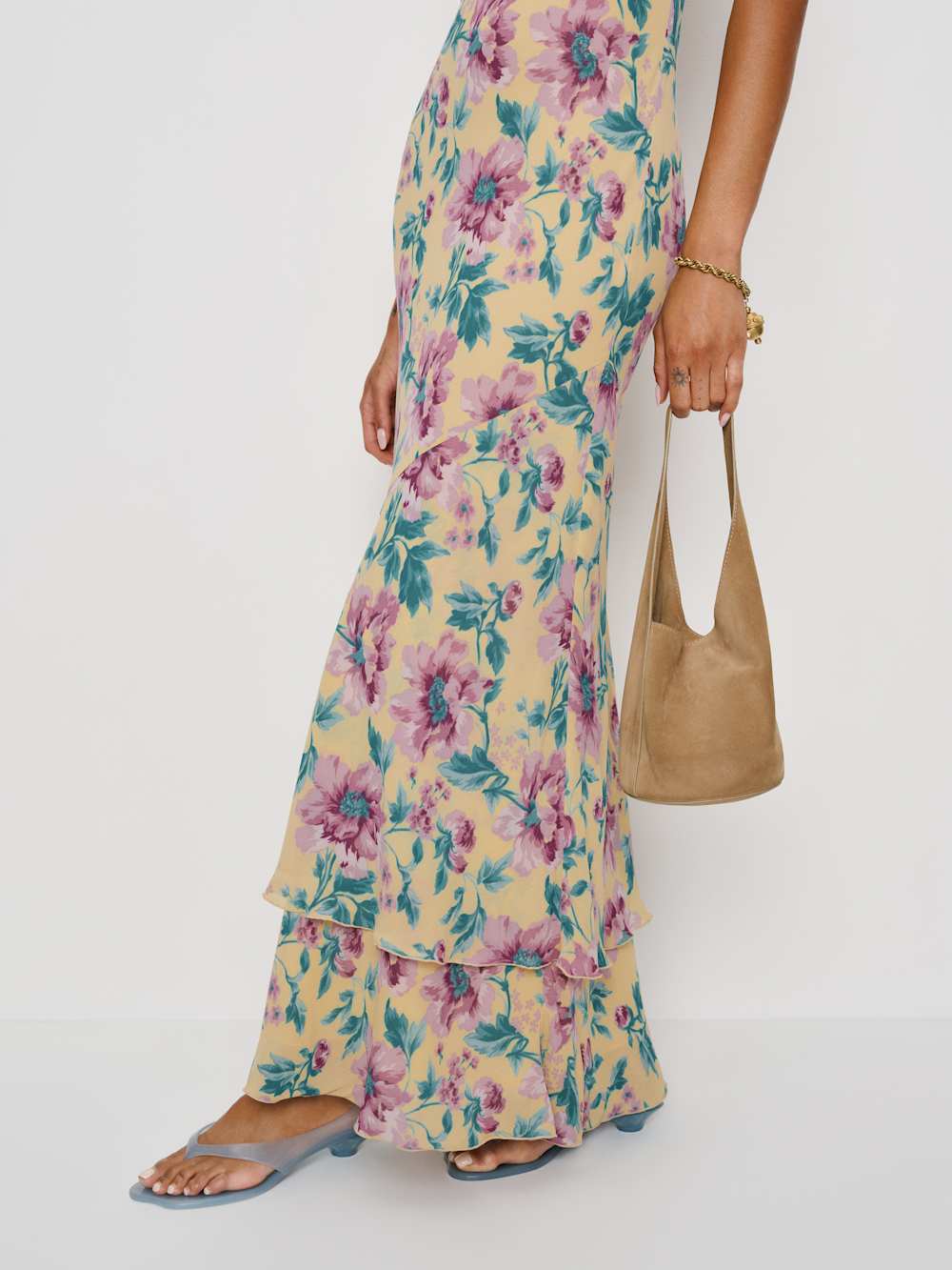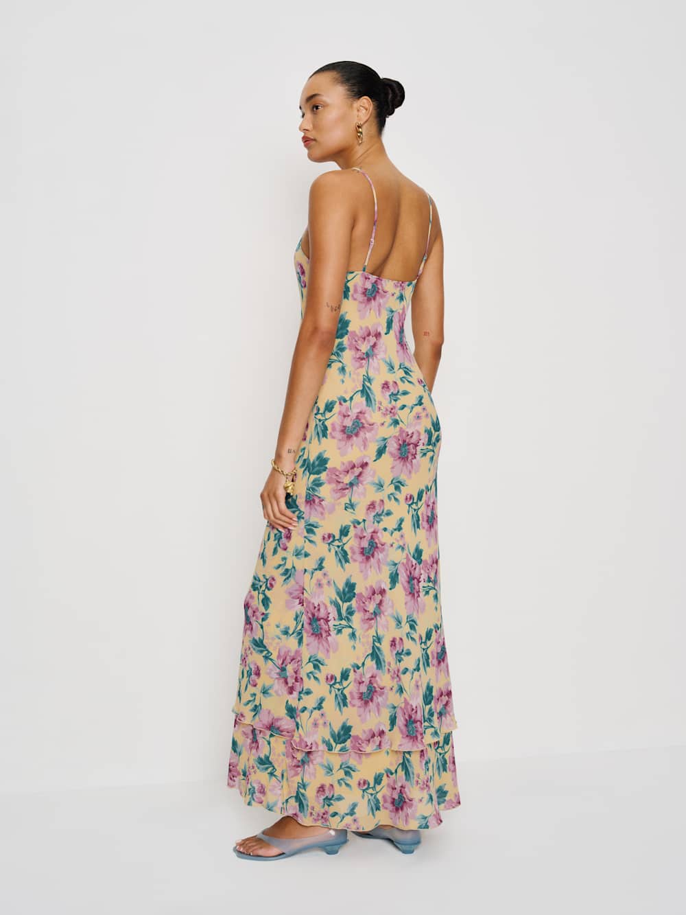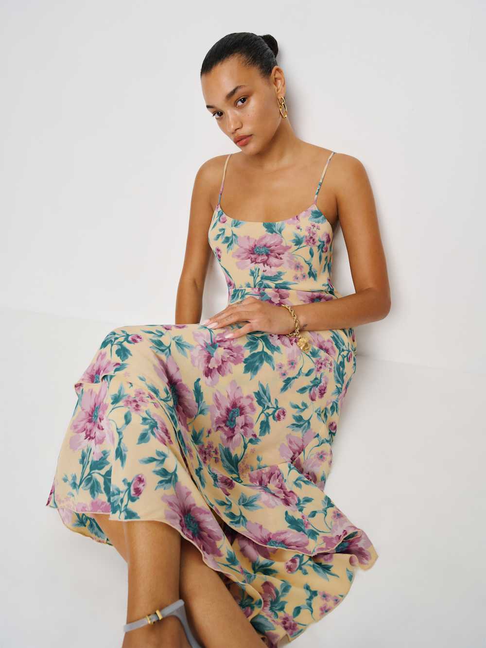 You must be new. Shop the Plume Dress from Reformation, a sleeveless midi dress with a scoop neckline and a tiered hemline.