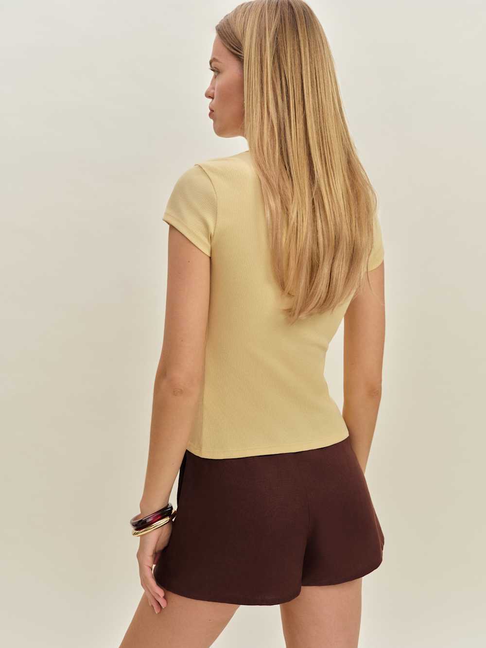Easy little knit. Shop the Raelynn Knit Top from Reformation, a short sleeve top with a button front.
