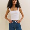 This is a non-stretch denim fabric made with 57% Regeneratively Grown Cotton and 43% TENCEL™ Lyocell. Wash cold + line dry.