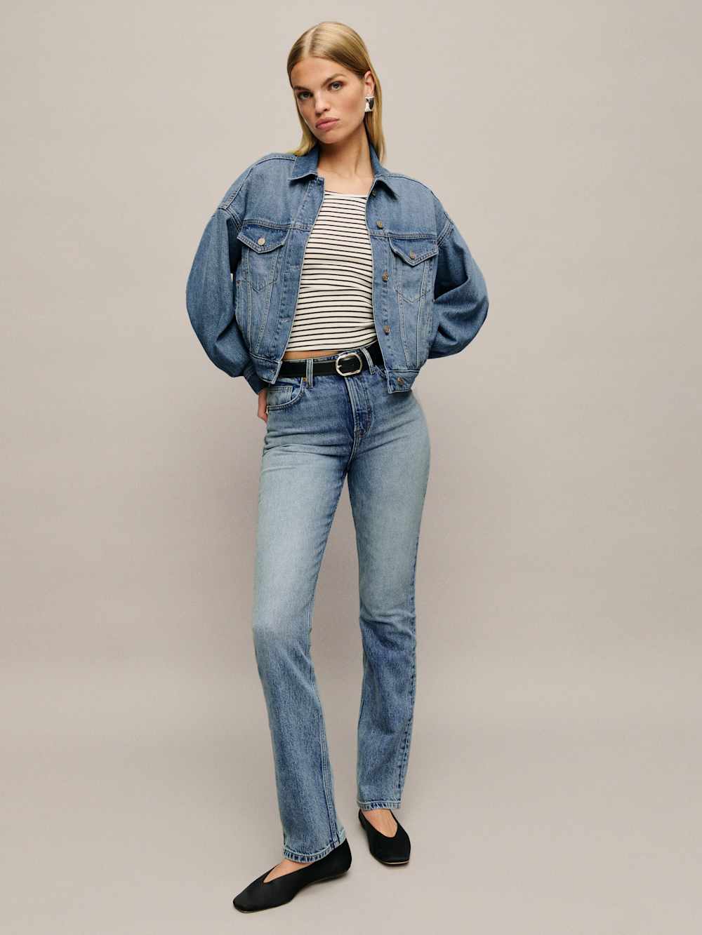 Denim – your uniform since forever. Shop the Rhodes Lived-in Denim Jacket, a sustainable jacket from Reformation.