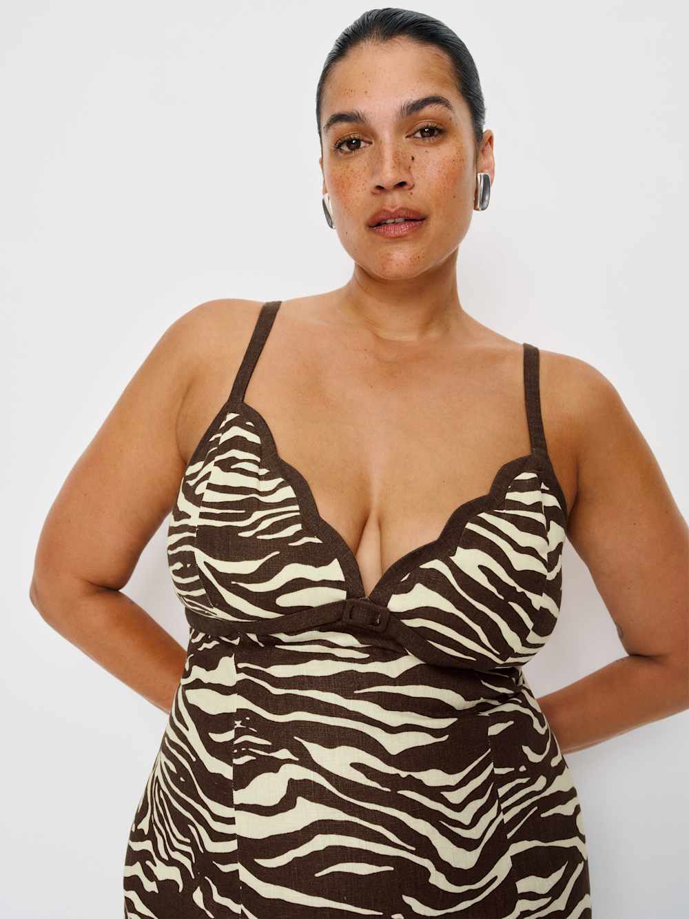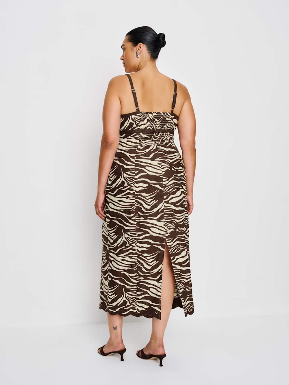 Sorry to all your other dresses. Shop the Sara Linen Dress ES from Reformation, a sleeveless midi dress with scalloped trim and contrast stitching.