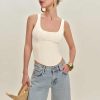Up top. Shop the Seren Top from Reformation, a sleeveless top with a scoop neckline and curved hem.