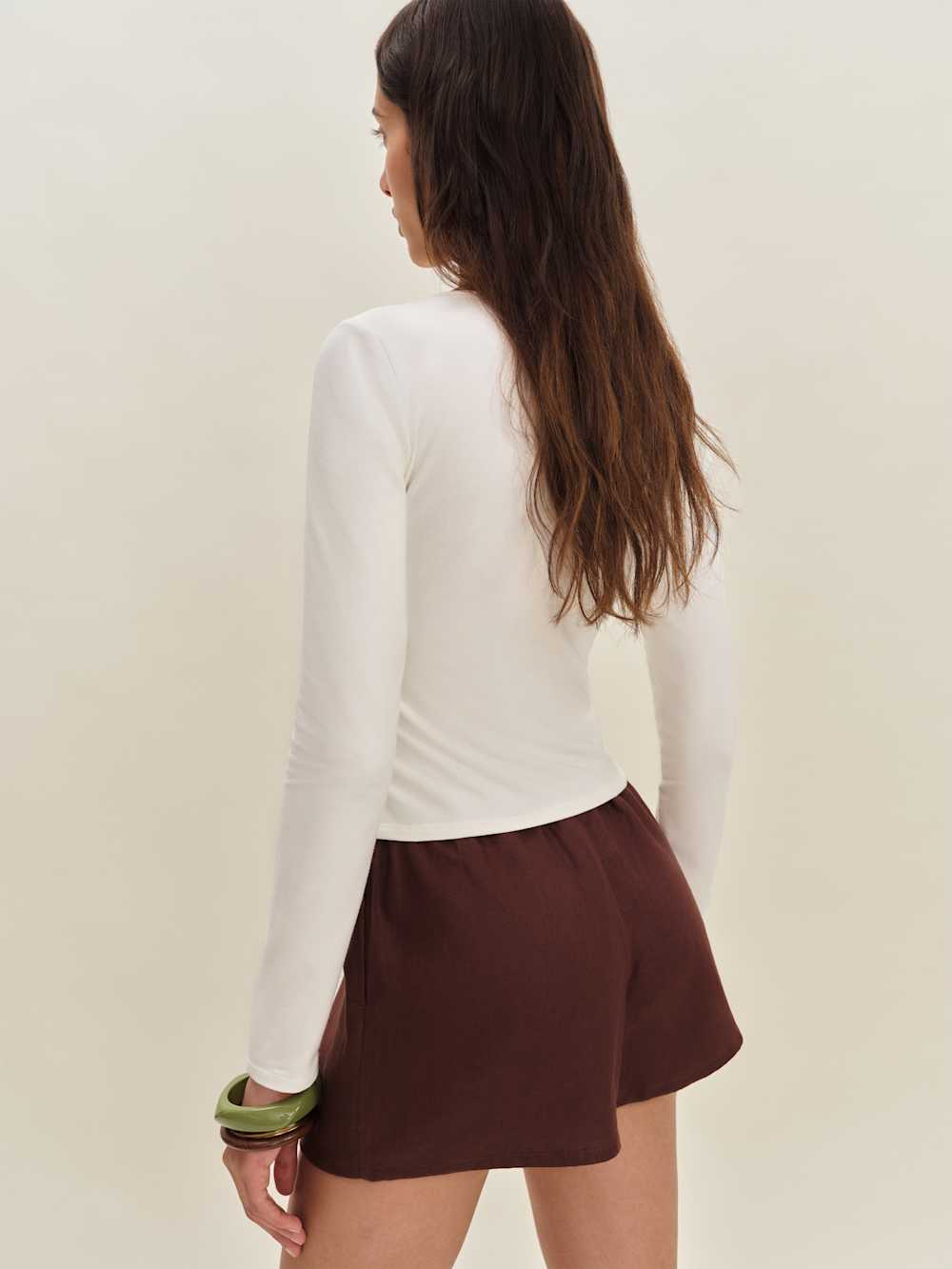 You make it look easy. Shop the Silas Knit Top from Reformation, a long-sleeved top with cinch details in the front.