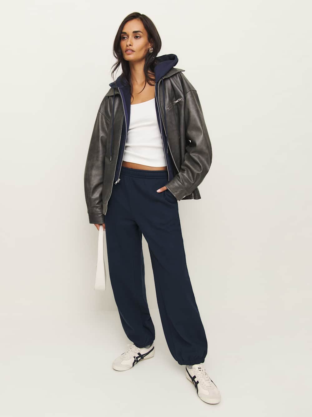 Shop the Skye Boyfriend Sweatpant from Reformation, a mid-rise sweatpant with a relaxed fit and cuffed ankles.