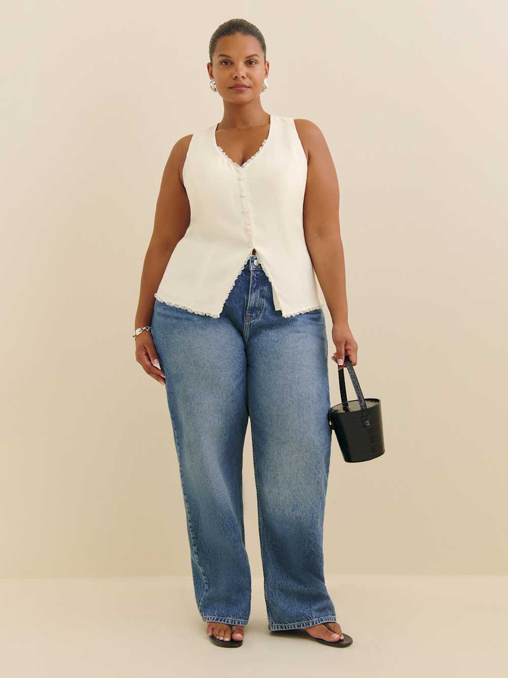 Up top. Shop the Skylar Top ES from Reformation, a sleeveless top with a v-neckline, button front, and split hem.