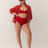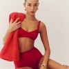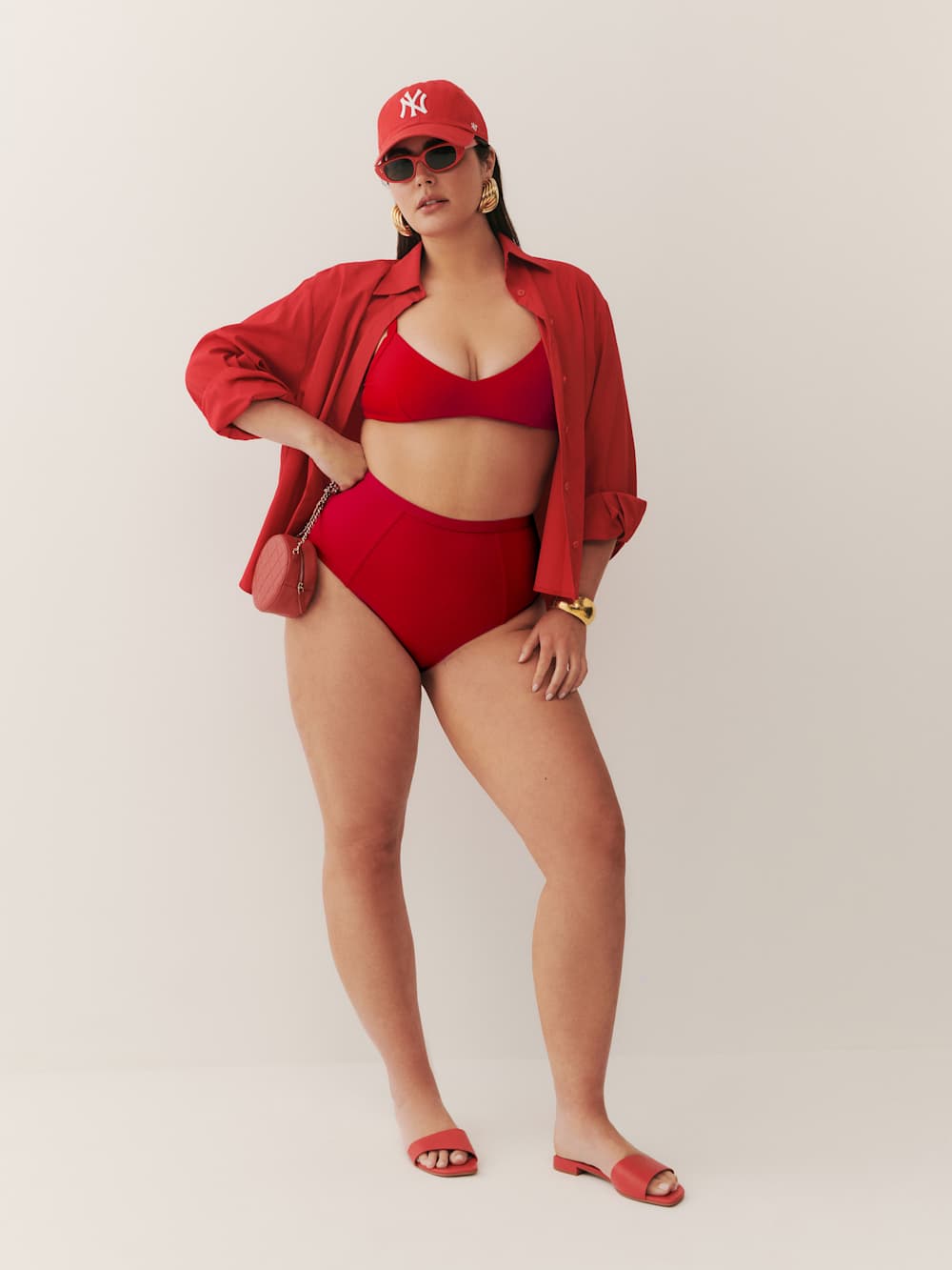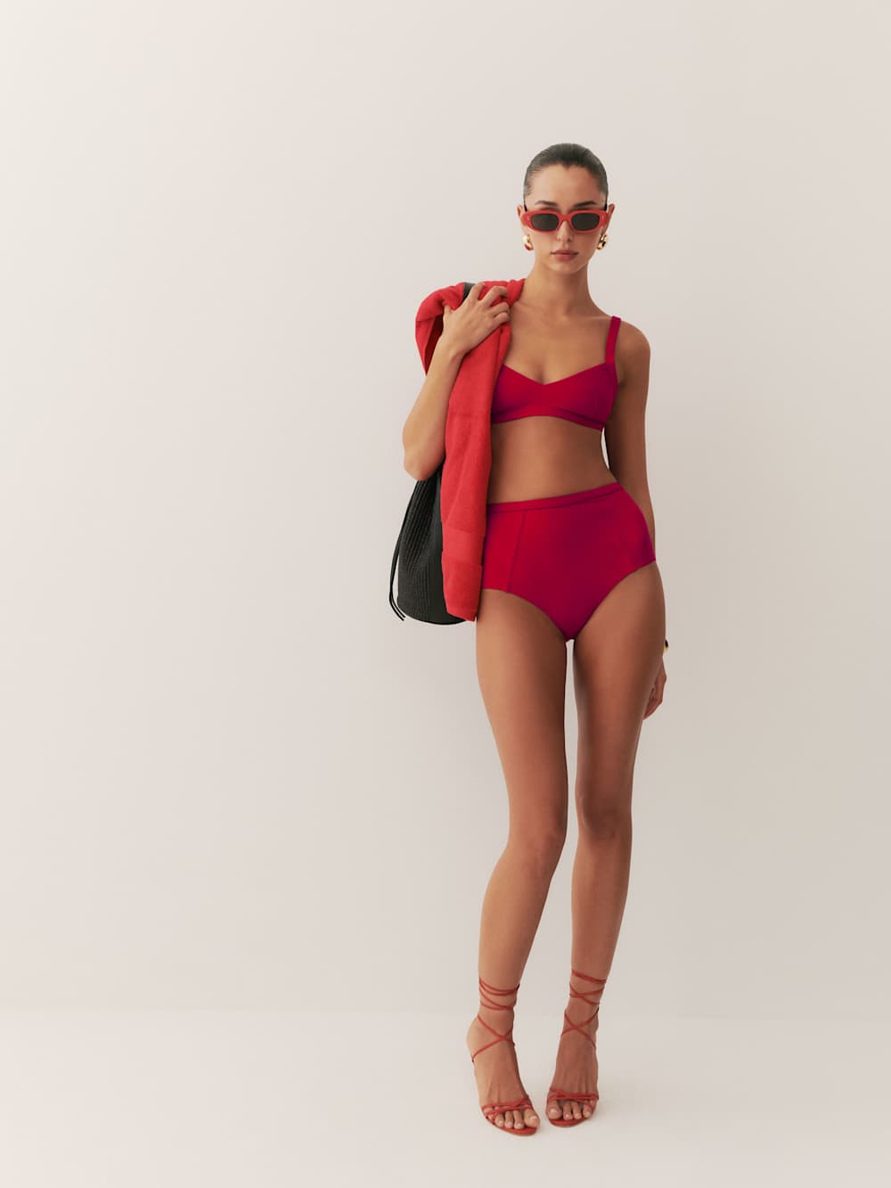 Half naked never felt so good. Shop the Soleil Bikini Top from Reformation, a bikini top with thick straps, a slight v neckline, and bust seams.