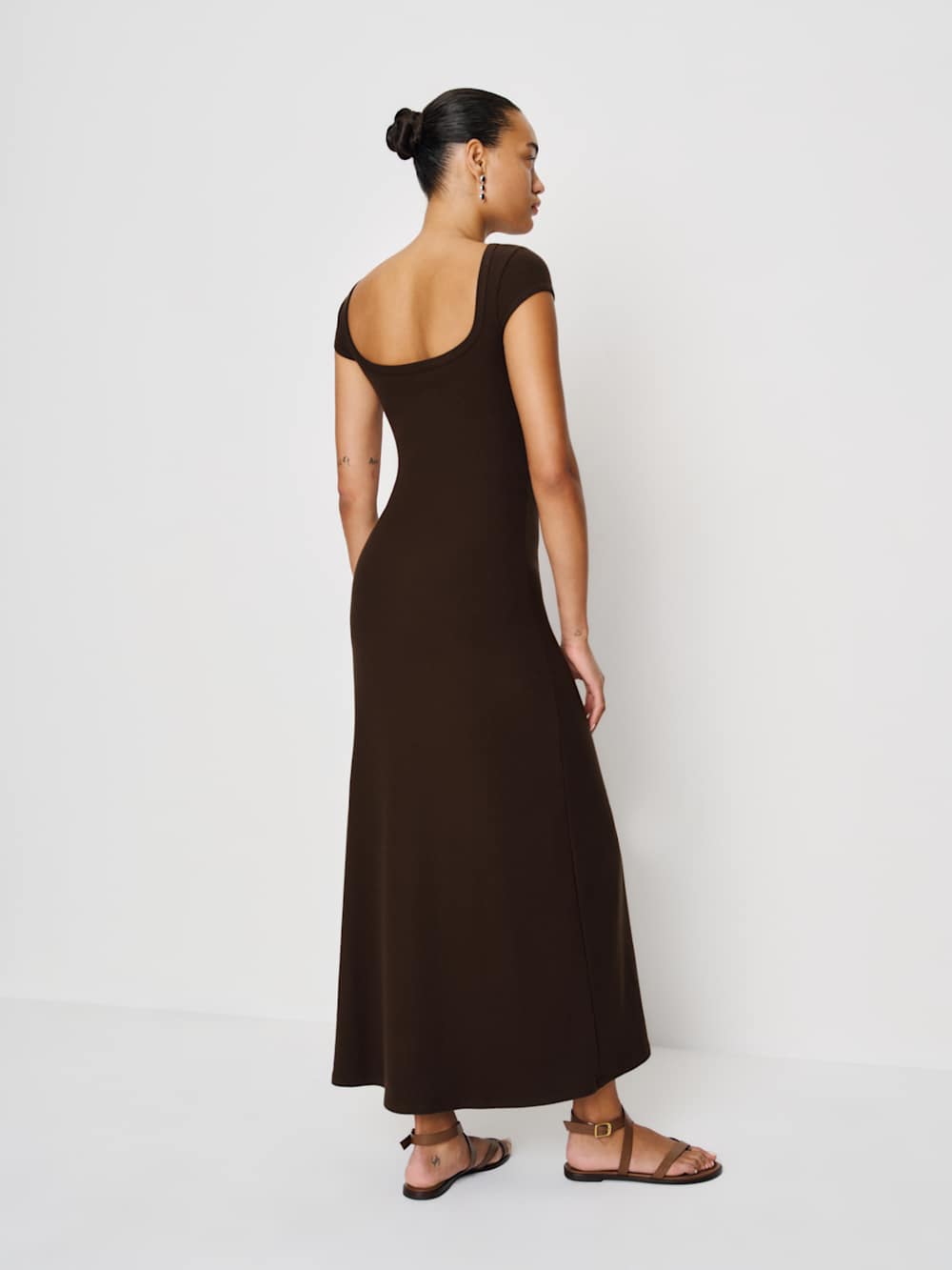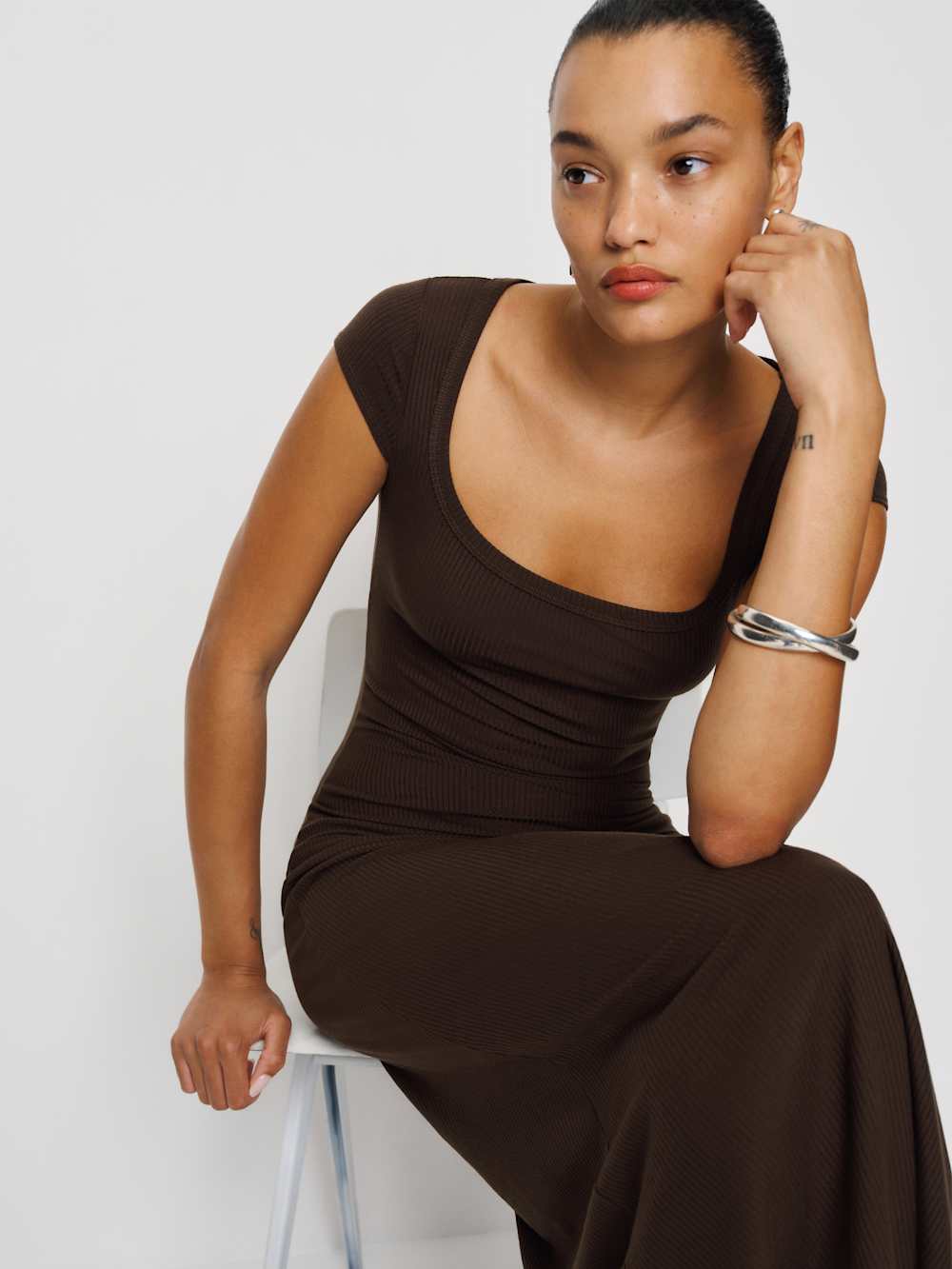 In case of weekends. Shop the Sophia Reversible Knit Dress from Reformation, a short-sleeved reversible midi dress.