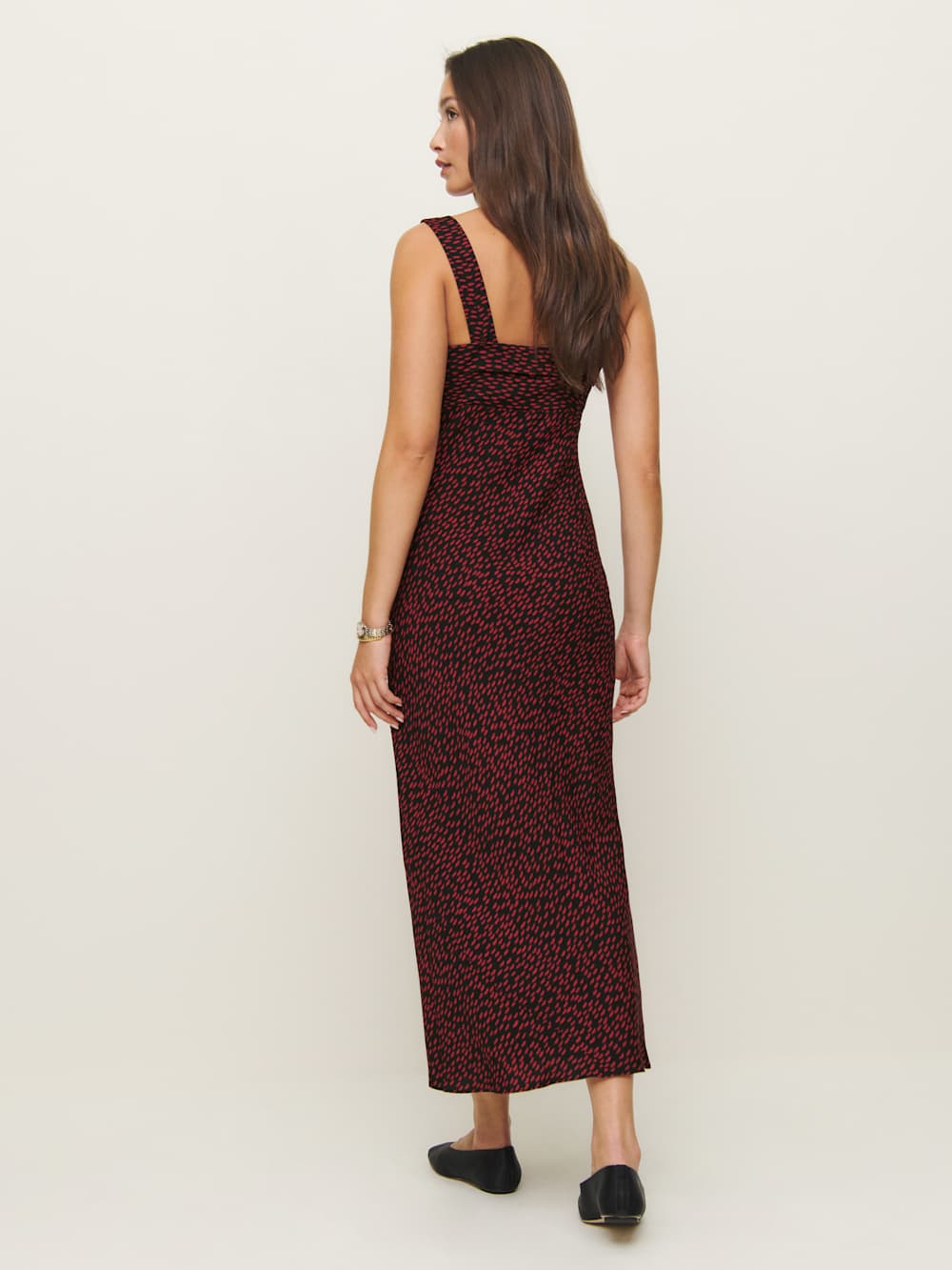 In case of weekends. Shop the Tancy Dress from Reformation, a midi length dress with thick straps and bust cup detailing.