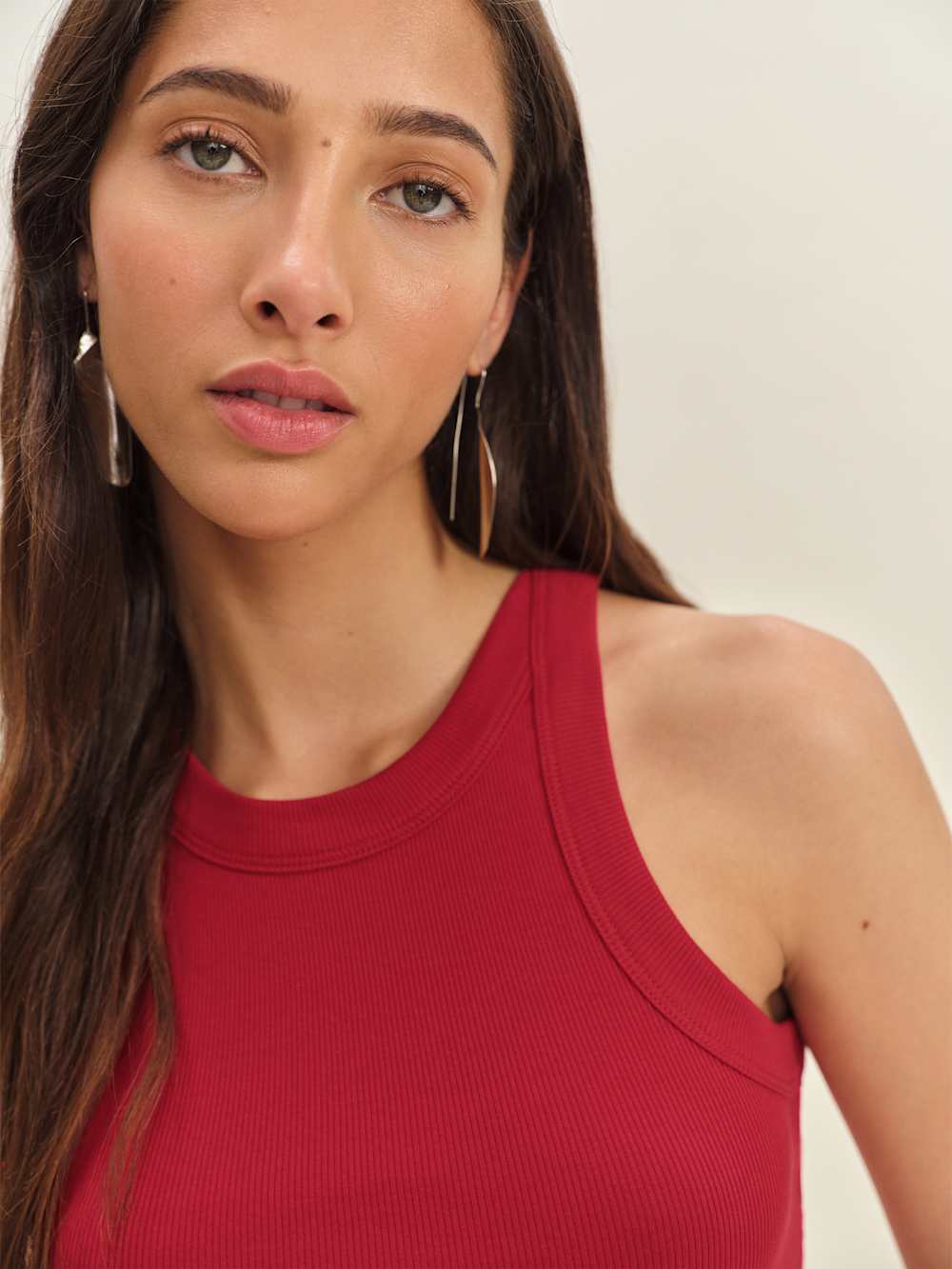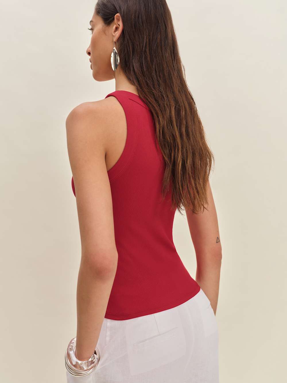 Layer up. Shop the Tasha Tank from Reformation, a slim fitted tank with a high neckline. Made with soft, stretchy fabric for ultimate comfort.
