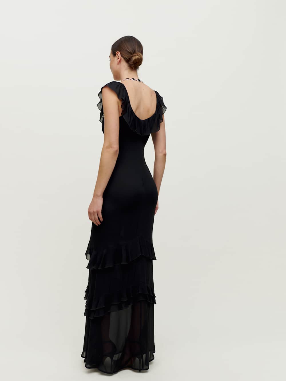 Romance alert. Shop the Tripoli Dress from Reformation, a maxi dress with a scoop neckline, ruffle detailing, and tiered ruffles throughout.