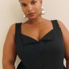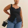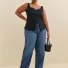 Up top. Shop the Viola Linen Top ES from Reformation, a sleeveless top with a sweetheart neckline, button front, lace trim, and a split hem.