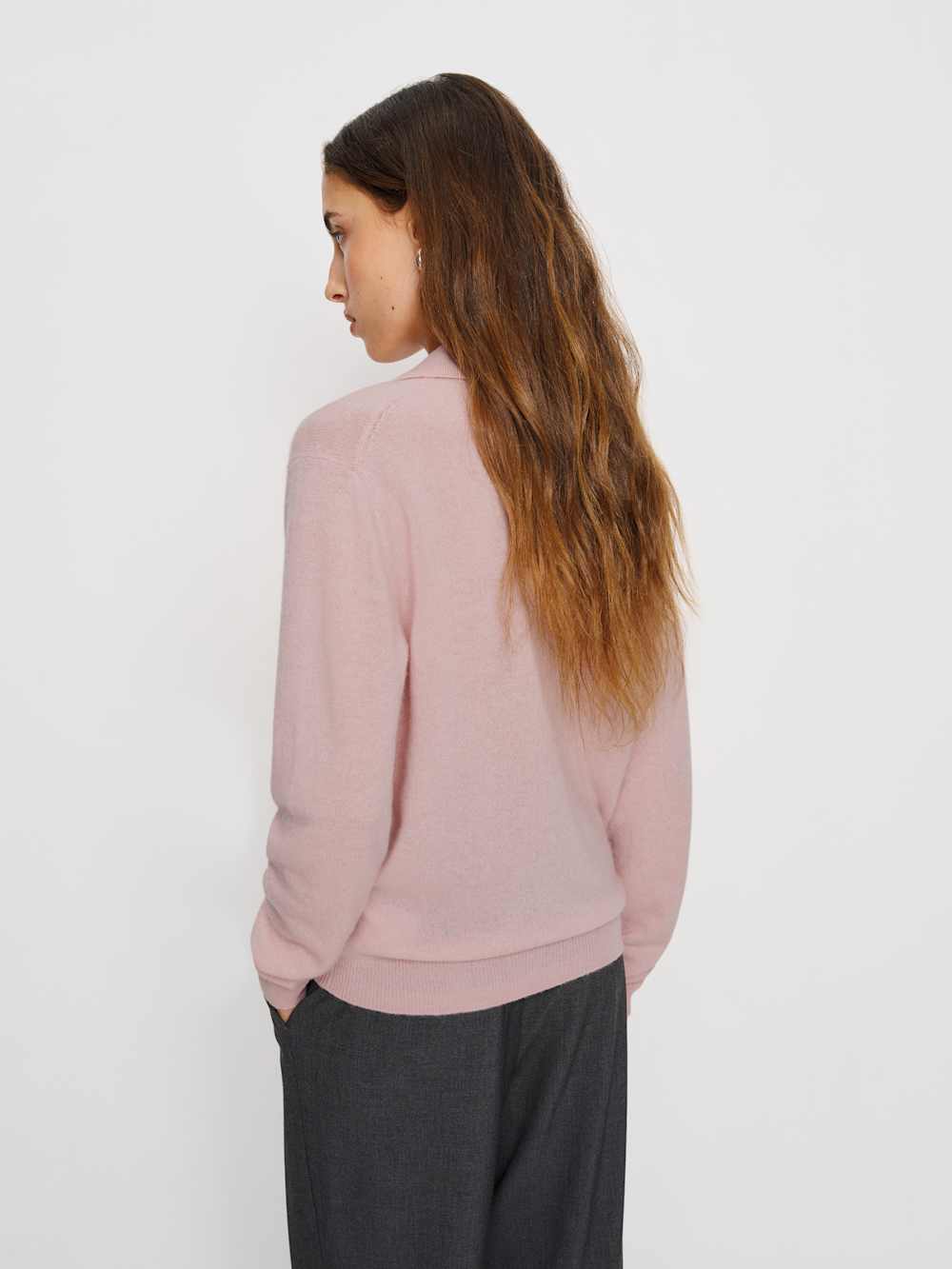 Time to add sleeves. Shop the Westley Cashmere Polo from Reformation, a long-sleeved sweater with a collar and V-neckline.
