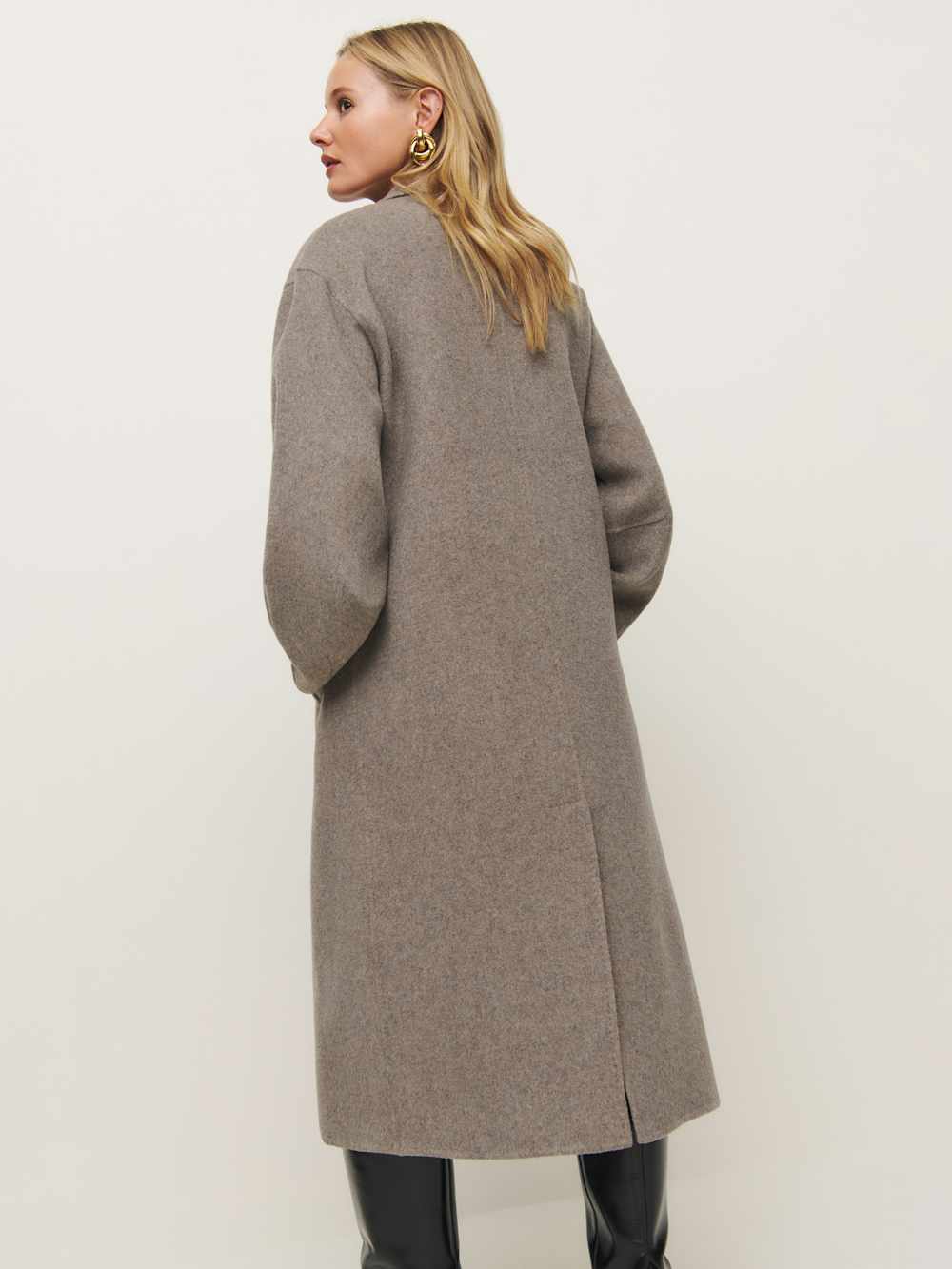 Layer up. Shop the Wyatt Double-faced Coat from Reformation, a long double faced coat with a collared neckline and button front.