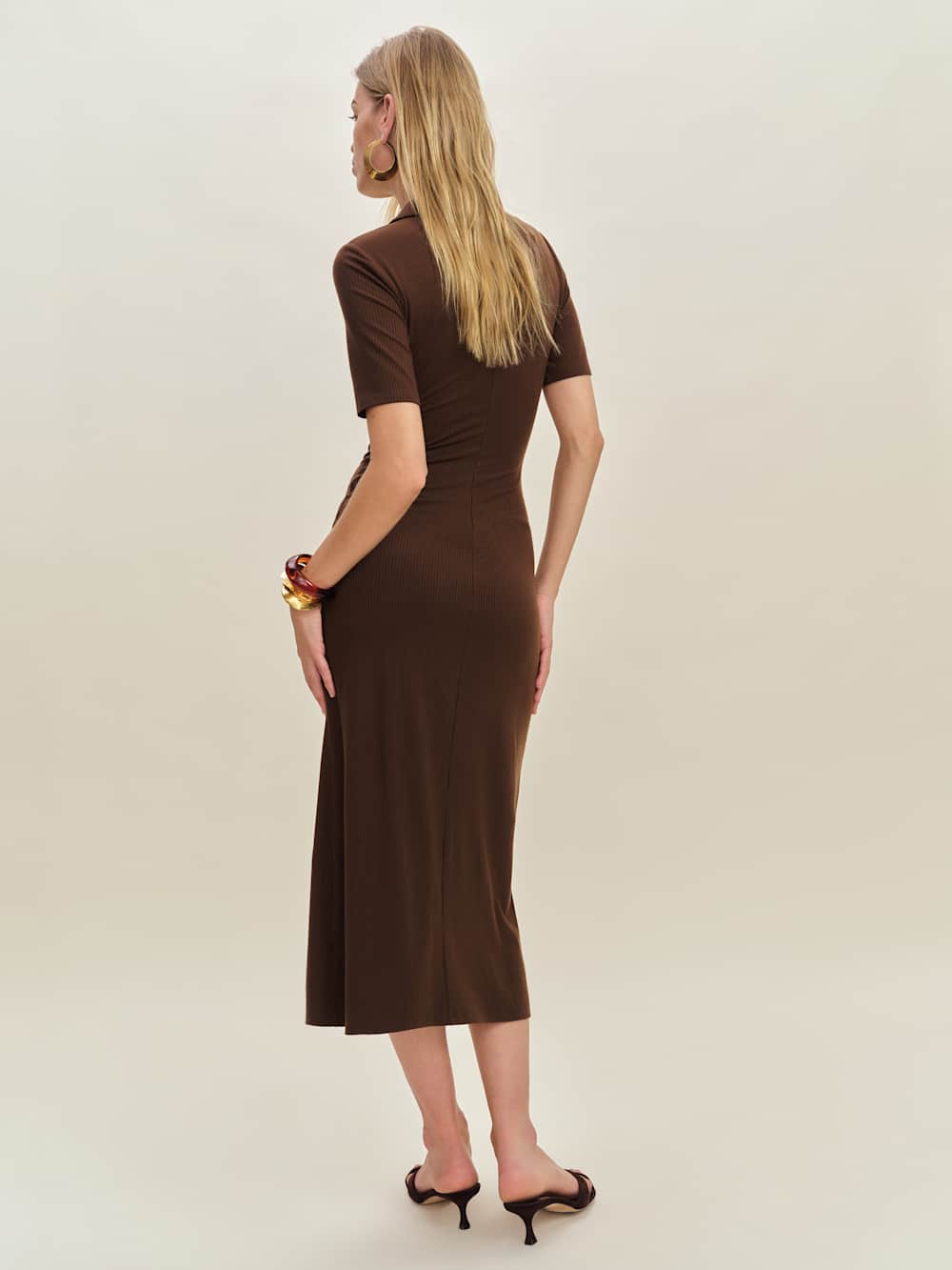 Wear the dress. Shop the Aiden Knit Dress from Reformation, a short sleeve midi dress with a collared neckline and button front.