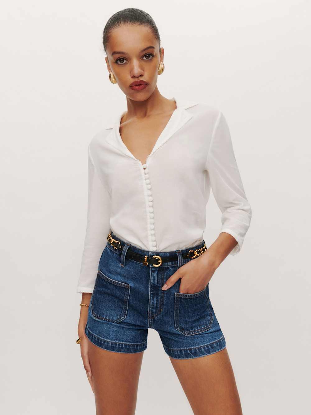 Gets along well with tops.The Alyssa is a high rise, vintage inspired jean short with a finished hem and front patch pockets.
