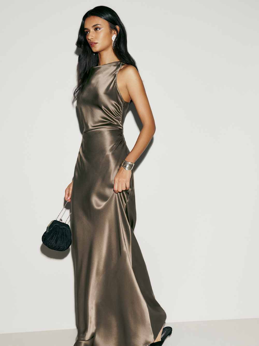 You flirt. Shop the Anaiis Silk Dress from Reformation, a maxi dress with a high neck and cross straps along the center back.