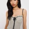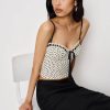 Shop the Andrea Top from Reformation, a sleeveless top with a sweetheart neckline, ruching at the neckline, and an adjustable tie.