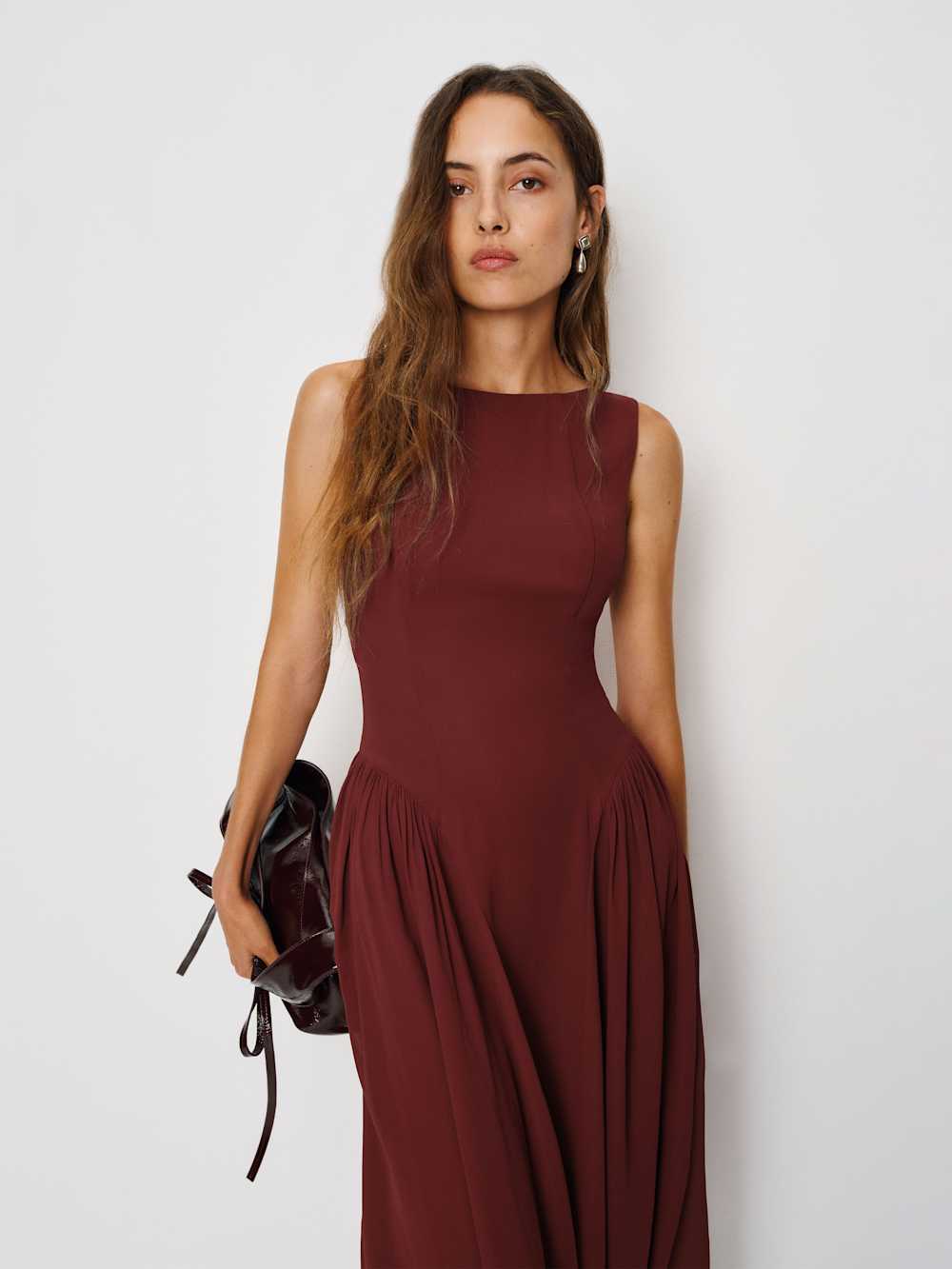 How classic. Shop the Anelis Dress from Reformation, a sleeveless midi dress with a high neckline and drop waist.