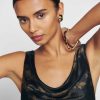 The model is wearing a size 0 and is 5’10", 23.5" waist, 34" hips, 32" bust.