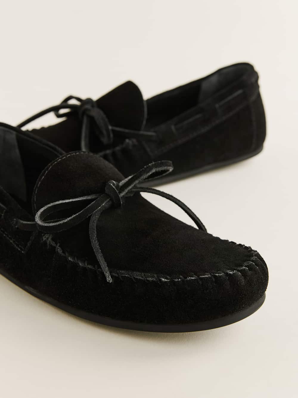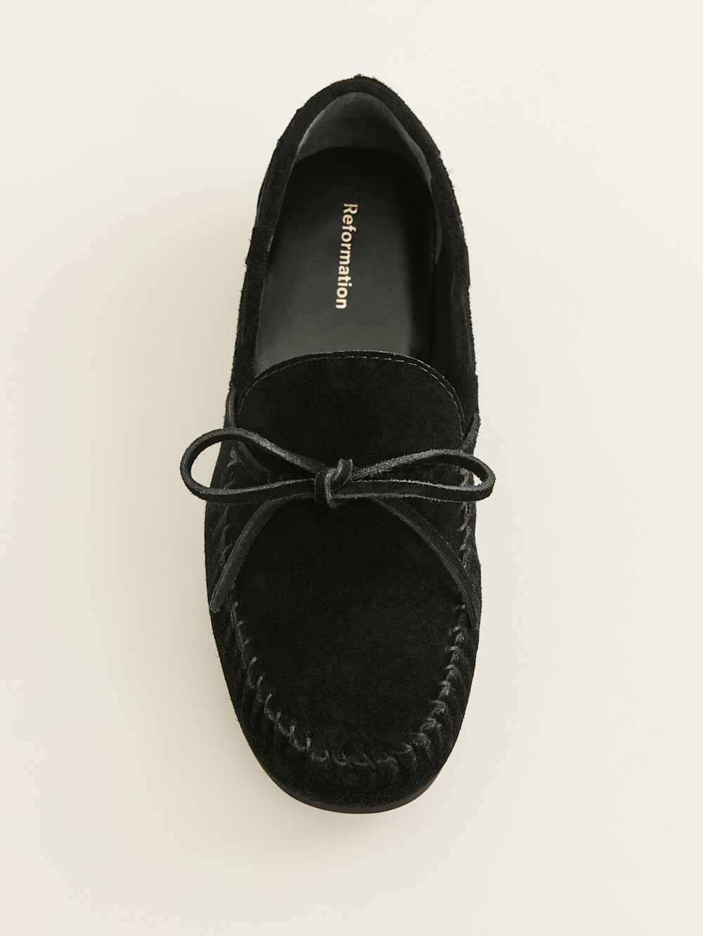 Wear me. Shop the Annette Moccasin from Reformation, a flat, boat-style loafer with an adjustable tie at the upper.